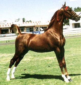 Days of Thunder is the result of the mating of Cameo's Rosa Lee with Scandal's Last Tango. This makes him a half brother of the 1997 World Grand Champion Five Gaited Horse Zoovoorbij Commander in Chief.