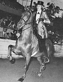 "I called Lloyd Teater and asked him and he said that I was crazy, that 'nobody does that!' Then I called Jim Blackwell. He was with the American Horse Show Association at the time, and told me that he couldn't find any rules against showing a three gaited stallion, but that I'd better check with the shows to make sure there were no local rules against it"