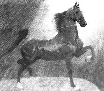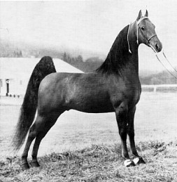 Valley View Supreme was brilliant of the hocks and he possessed beauty, expression and presence never before seen in a saddle horse. His ears often touched at the tips and he had a beautiful sculptured head.