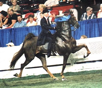 A great grandson Callaway's Blue Norther (Will Shriver x Oman's Anacacho Maytime ) is shining the Wing Commander star at the moment (2002/2003). He won the Three Year Old Stallion/Gelding Five Gaited Stake in 1984 and the 1985 Reserve Junior Five Gaited World Championship title. A reserve and third placing at the 2002 World Championship Horse Show was given to two of his offspring, Adelita and Callaway's Banner Headline. Another foal of his, Callaway's Forecaster was a great crowd favorite and was placed 4th. At the recent 2003, 100th Kentucky State Fair, Centennial of Champions, both the Five Gaited World Grand Champion, Callaway's Forecaster and the Reserve Five Gaited World Grand Champion, Adelita, are by Callaway's Blue Norther! What an achievement!